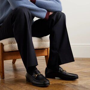 Modern interpretations of archival symbols both pay tribute to Gucci's heritage while looking towards the future. This pair of leather loafers reimagines the emblematic loafer with Horsebit with a flat sole. The gold-toned detail is a direct link to the House's beginnings in the world of sports and leisure.