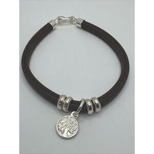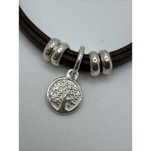 950 Sterling Silver Brown Leather Bracelet Tree Of Life Charm