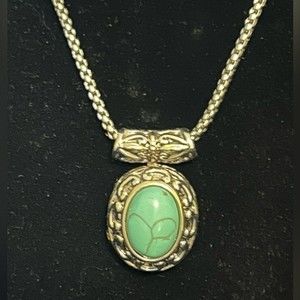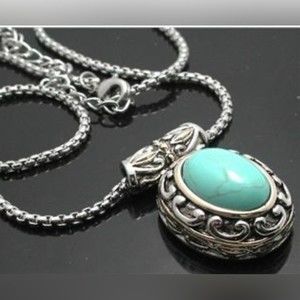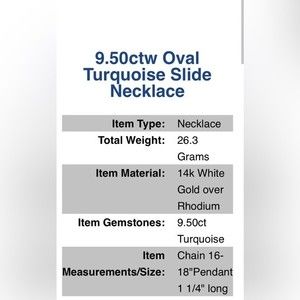 9.50ctw Turquoise Oval Slide Necklace on white gold chain