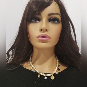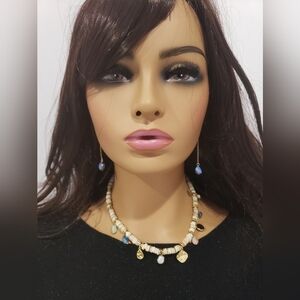 Chips Shells And Beads Women's Handmade Necklace And Earrings Gold Plated NWT