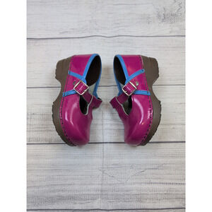 VGUC Sanita Dana Mary Jane clogs. Pink patent leather with blue trim. T-strap buckle. Excellent tread.