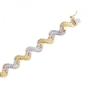 9.5mm 14K Two Tone Gold Fancy Wave Link Bracelet