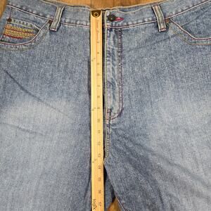 96 NORTH Men’s 40 Denim Shorts Distressed Embroidered Wide Leg Baggy Y2K Style