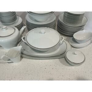Indulge in luxury dining with this exquisite 96-piece Rosenthal bone china set, perfectly designed for a service of twelve. Each piece reflects Rosenthal's commitment to quality and timeless elegance, making it an ideal addition to any formal dining collection.