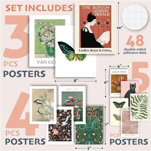 🧿Set Includes: 3pcs 8x10 inches cool eclectic prints, 4pcs 5x7 inches trendy eclectic posters, 5pcs 4x6 inches. A total of 48 sticky dots are included so you can hang our earthy eclectic wall decor aesthetic posters set without buying frames