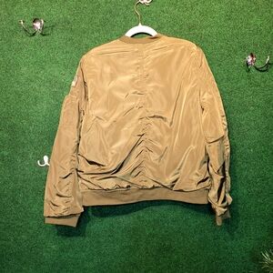 Classic bomber style with a khaki finish. Features signature patches and ribbed cuffs. Ideal for casual wear.