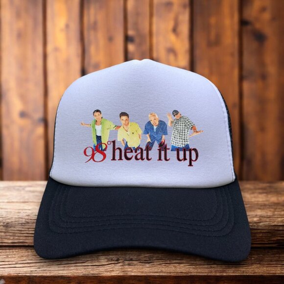 98 Degrees Heat It Up Mens Trucker Hat Black 90s Boy Band Baseball Cap