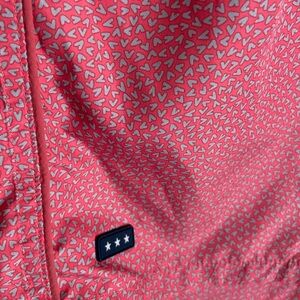 $98 John Varvatos Lummus Mens Swim Bottom Trunks in Coral Red with little grey Vs