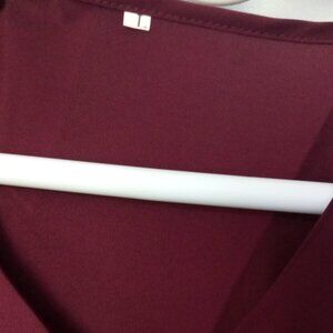 This beautiful maroon blouse has sheer clip dot long sleeves with elastic cuffs and a V-neck. PTP: 22".