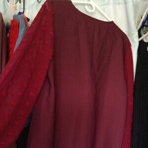 🌠 #98 Maroon Blouse w/ Sheer Clip Dot Sleeves