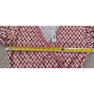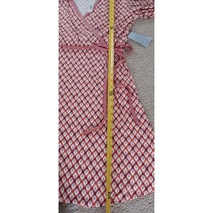 $98 Max Studio Women's L Large Faux Wrap Dress Red Cream Sleeves Knee Length NWT