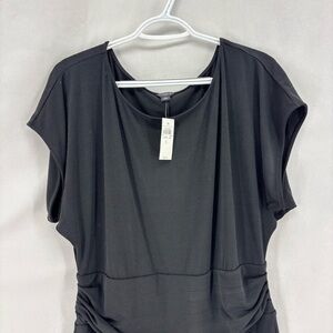 Ann Taylor Black Cap Sleeve Cinched Waist Midi Size Large NWT $98