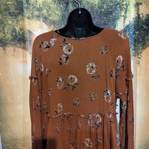 Embrace bohemian charm with this Peach Love California floral top. Designed in a warm rust hue with delicate floral prints. The deep V-neckline and feminine empire waist create a flattering silhouette, while the ruffled detailing adds a subtle, flirty touch. Featuring long bell sleeves for a vintage-inspired vibe, this lightweight, breathable fabric ensures comfort and style all day long.