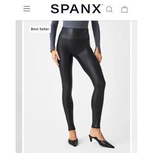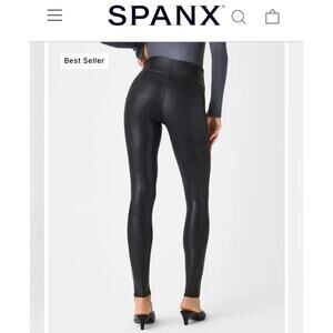 $98 Spanx Women's Black Faux-Leather Leggings Pants Size Medium