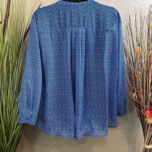 #98 a.n.a blue/white Long adjustable sleeve semi sheer, printed top size 3X