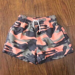 98 coast Ave swim trunks peach and olive green camo print boys swim trunk shorts size small