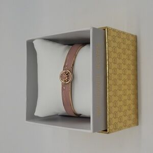 988- MICHAEL Michael Kors Haute Rose Gold Enamel Rose Color Bangle Bracelet NWT