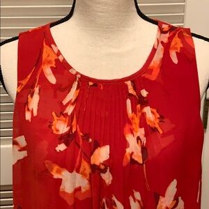Flower pattern in delicate shades of red, pink, off white.