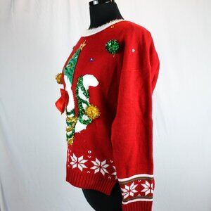 Furry white cat with faux gems, garlands, a bow and pom poms