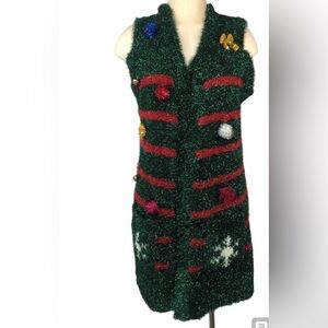 99 Jane Street Christmas Holiday Long Vest Sparkly Metallic Turf Like Texture L