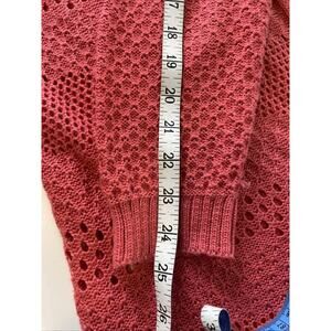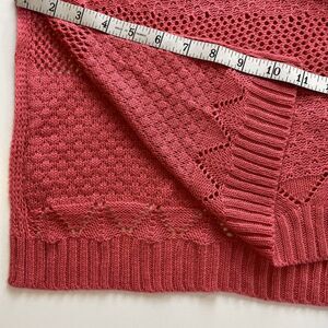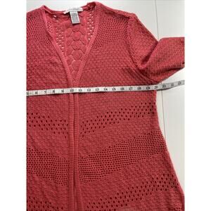 99 Jane Street Long Open Cardigan Sweater, Coral Rose, Crocheted size Large