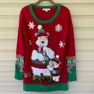 99 Jane Street Red and Green Polar Bear Holiday Sweater Size S