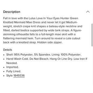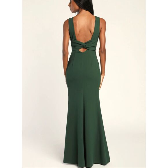 $99 Lulus Love In Your Eyes Hunter Green Knotted Mermaid Maxi Dress size small