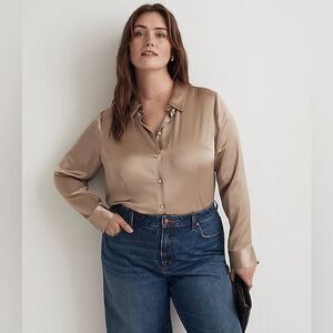 99 madewell no449 Plus Darted Satin Button-Up Shirt in matchstick size 28W