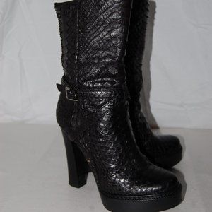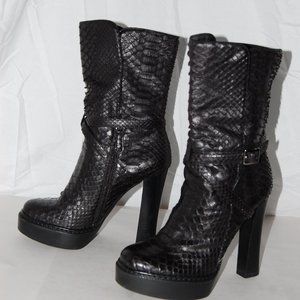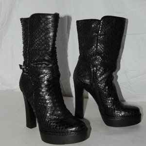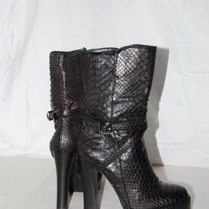 $995❤️ 38/8 Made in ITALY Black Snakeskin Platform High Heel Ankle Boots Bootie