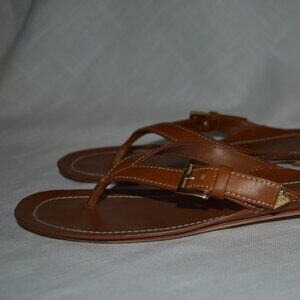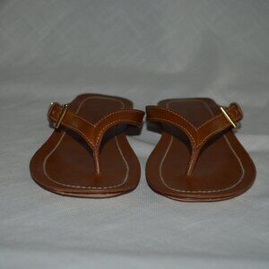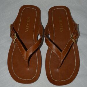 Sz 37 6.5 Prada Brown Leather Calfskin Buckle Flat Thong Sandals