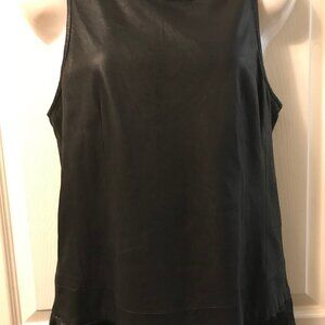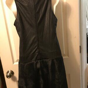 $995 THEORY BLACK LEATHER GOAT FUR SHIFT DRESS SIZE 6 Effiaria