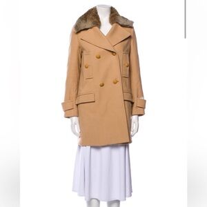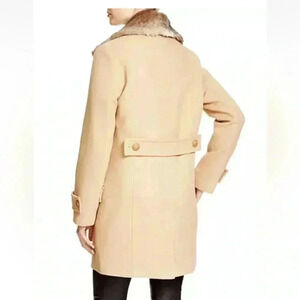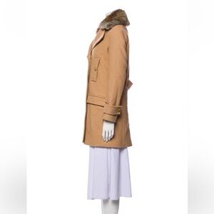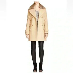 $995 Vince Rabbit Fur Collar Wool Blend Coat, Almond Size 2