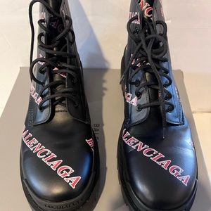$998 BALENCIAGA STRIKE LOGO COMBAT BOOTS SIZE 42E / 43 E MISMATCH 9 US /10 US