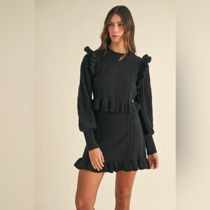 Ruffle knit two piece set with long sleeve ruffle peplum crop top and mini skirt. Soft and thick fabric. Not see through. High quality and sooo cute!
