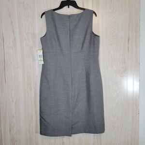 Lovely pearl gray above-the-knee sleeveless sheath dress with zipper at center back.