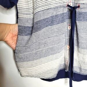 9-H15 STCL Linen Striped Drawstring Tunic Top Navy Blue Women Medium Boho Casual