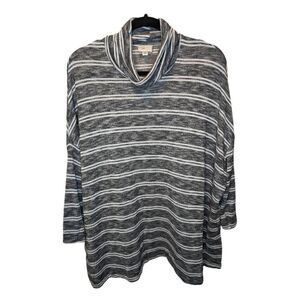 9-H15 STCL by Anthropologie Postage Stamp Striped Dolman Knit Sweater Gray White