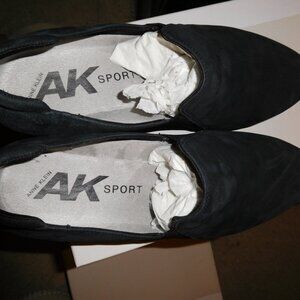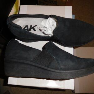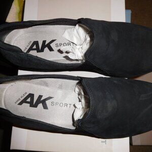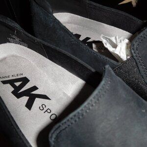 9M AK SPORT ANNE KLEIN SPORT AKINVITE INVITE BLACK NUBUCK SUEDE LEATHER SLIP ON WEDGE DRESS sHOE.