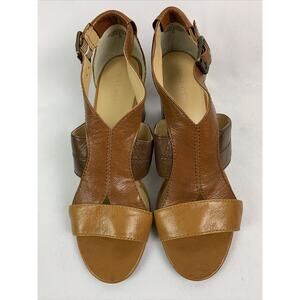 9M Nine West 3" Chunk Heel Sandal Women's Two Tone Brown "7LYNN" Ankle Strap