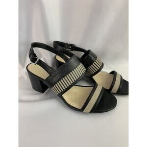 9M Nine West "Goodieo" Black and Tan 2.5" Block Heel Sandal Women's