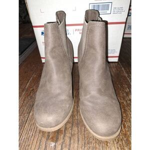 Good Used Condition Women's Size 9M Rampage Ram Mousy Brown Wedge Heel Faux Leather Ankle Boots Booties Shoes with Stretch Gore