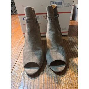 Good Used Condition Women's Size 9N Vaneli Brown Suede (Could be Suede or Microfiber- the Outsole is Marked Vero Cuoio) Open Toe Open Heel Side Zip Pump Stiletto High Heel Dress Shoes Booties Boots