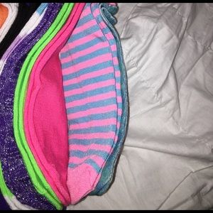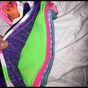 9 different pair of cool looking socks ranging from plain, to stripes, to sparkles, to polka dots, to pigs with crowns! Still packaged and never been worn