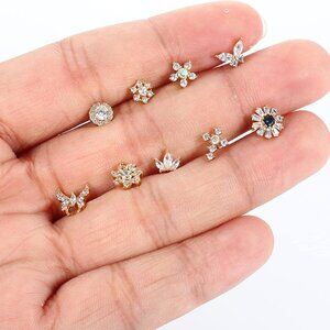 9Pcs Stainless Steel Nose Rings Set with CZ Moon Star Flower Butterfly Jewelry
