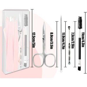- Includes 4 premium tweezers (slant, pointed, flat, angled), facial razor, brow scissors, spoolie brush, and more