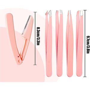 - Chic 9-piece pink grooming kit designed for precise eyebrow shaping, trimming, and facial hair care With Case