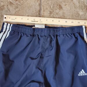 Adidas - dark purple pants - no drawstring - loose fit capri length - 87% polyester/ 13% spandex