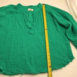 9Seed Resort Marrakech green gauzy dashiki cover up top. Split neck. Raglan half sleeves. Light and airy. Size is M/L. Measurements in photos. Excellent condition. Smoke free home