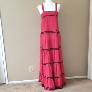 9Seed Sayulita Cherry Red Navy Trim Tiered Maxi Dress - Size M/L