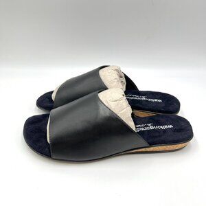 9WW 9 WW XW WIDTH Walking Cradles Womens Cam Black Leather Slides Sandals Shoes